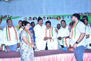 ఈ సందర్భంగా ఎమ్మెల్యే మనోహర్ రెడ్డి మాట్లాడుతూ పాత కొత్త అని వ్యత్యాసం లేకుండా నాయకులందరూ కలిసికట్టుగా రాబోవు అన్ని ఎన్నికలలో కాంగ్రెస్ పార్టీ బలోపేతానికి కృషి చేయాలని కార్యకర్తలకు- నాయకులకు సూచించారు. పార్టీలో చేరిన దొరిశెట్టి సత్యమూర్తి మాట్లాడుతూ రాష్ట్ర ముఖ్యమంత్రి రేవంత్ రెడ్డి నాయకత్వంలో కాంగ్రెస్ పార్టీ ప్రవేశపెట్టిన సంక్షేమ పథకాలను ప్రతి ఇంటికి గడపగడపకు చేరవేసి రానున్న ఎన్నికలలో కాంగ్రెస్ పార్టీ బలోపేతానికి కృషి చేస్తానని అన్నారు. అనంతరం పార్టీలో చేరిన దొరిశెట్టి సత్యమూర్తి ఎమ్మెల్యే బుయ్యని మనోహర్ రెడ్డిని శాలువాతో సన్మానించి గజమాలతో ఘనంగా సత్కరించారు. ఈ కార్యక్రమంలో తాండూరు పట్టణ కాంగ్రెస్ పార్టీ ప్రజా ప్రతినిధులు, నాయకులు, కార్యకర్తలతో పాటు 23వ వార్డు సీనియర్ నాయకులు వార్డు ఇన్చార్జ్ భరత్ రెడ్డి,బోయ సుదర్శన్, మహిళా నాయకురాలు మాధవి వార్డు ప్రజలు తదితరు పెద్ద ఎత్తున పాల్గొన్నారు.