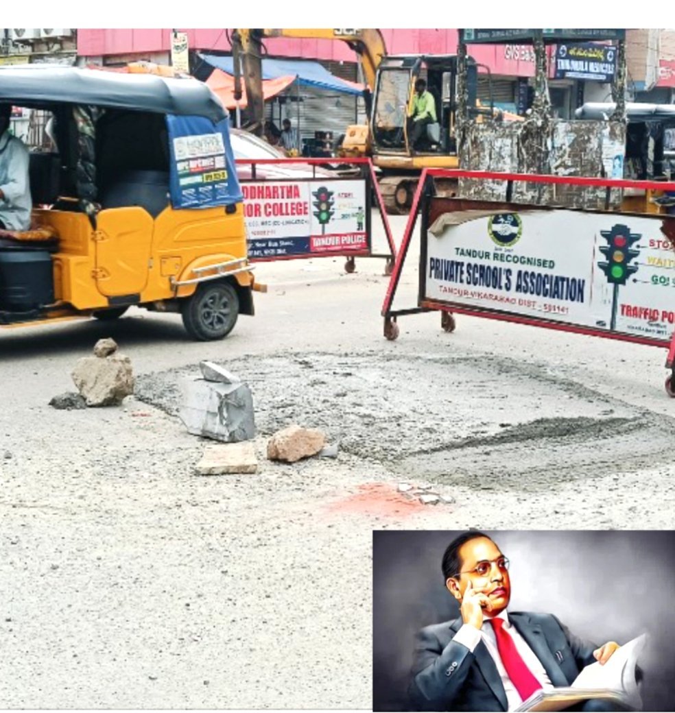 నేటి ఇజం : భారత రాజ్యాంగ ప్రదాత డాక్టర్ బి.ఆర్ అంబేద్కర్ విగ్రహం ముందు రోడ్డు పై గత కొన్ని రోజులుగా చిన్న గుంత నుండి పెద్ద గుయ్యిలా మారి వాహనదారులకు ఇబ్బందులకు గురిచేసిన ఆ గుంత రేపు మంగళవారం తాండూరు పర్యటనకు తెలంగాణ రాష్ట్ర మంత్రులు వస్తున్న నేపథ్యంలో సోమవారం మోక్షం లభించింది. గత కొన్ని రోజులుగా సాక్షాత్తు తమ విగ్రహం ముందు వాహన దారులు, బాటసారులు అనుభవించిన భాదలకు నేటితో స్వస్తి. గత కొన్ని రోజులుగా బస్టాండ్ ముందరగల అంబేద్కర్ విగ్రహం ముందు ఏర్పడిన గుంతను పట్టించుకోని ఆర్ &బి అధికారులకు రేపు మంత్రులు వస్తున్నారని ఈరోజు కనిపించడం గమనార్హమని పలువురు వాహనదారులు పేర్కొనడం విశేషం.