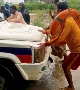 నేటి ఇజం -తాండూరు: వికారాబాద్ జిల్లా తాండూరు మండలం ఓగిపూర్ గ్రామంలో భారీ వర్షాలతో నాపరాతి గనిలో లారీలో చిక్కుకున్న కార్మికులను కాపాడేందుకు వెళ్లిన కరణ్ కోట్ పోలీసుల వాహనం వరదలలో చిక్కుకున్న వైనం… పోలీసులు క్షేమం