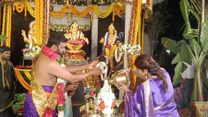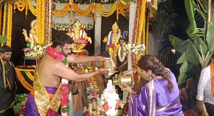 నేటిఇజం :తాండూరు ::తాండూరు మాజీ ఎమ్మెల్యే పైలెట్ రోహిత్ రెడ్డి ఆధ్వర్యంలో గురువారం సాయంత్రం స్వగృహంలో నిర్వహించిన అయ్యప్ప స్వామి మహా పడిపూజతో పరిసర ప్రాంతాలు ఆధ్యాత్మిక వాతావరణంతో పరమలించాయి. తాండూరు ప్రజలందరూ బాగుండాలని శరణు కోరుతూ మాజీ ఎమ్మెల్యే పైలెట్ రోహిత్ రెడ్డి- ఆర్తి రెడ్డి దంపతులు నిర్వహించిన అయ్యప్ప స్వామి మహా పడిపూజ అంగరంగ వైభవంగా అయ్యప్ప స్వామి శరణు ఘోషతో మార్మోగింది. మహా పడిపూజ సందర్బంగా అయ్యప్ప మాల దారులు-భక్తులు ఆలపించిన భక్తి గీతాలు ప్రత్యేక ఆకర్షణగా నిలిచి ఆధ్యాత్మిక వాతావరణం సంతరించుకుంది. మిరమిట్లు గొలిపే విద్యుత్ వెలుగులలో రంగురంగుల పూలతో అలంకరించిన స్వామి 18 మెట్ల మహా పడిపూజ వేదిక ప్రత్యేక ఆకర్షణగా నిలిచింది.